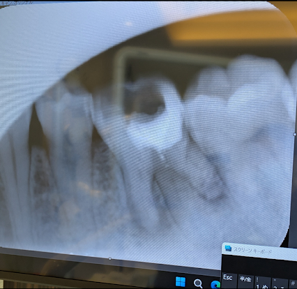 遠心舌側根っぽいのが映っていて根尖透過像もあるのですが、難易度が高いということでまずはCTで診断したほうがいいと判断しました。